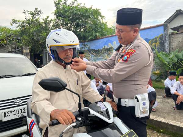 Pada kegiatan tersebut, Satlantas Polres Kediri kali ini berkunjung di Pondok Pesantren Roudlotul Ibaad di Desa Ngino Kecamatan Plemahan Kabupaten Kediri, pada Sabtu (14/6/2025) sore.