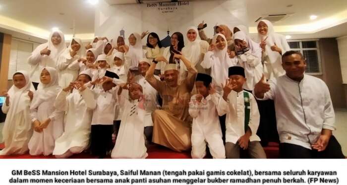 Surabaya || faktaperistiwanews.co – Berbagi berkah di bulan suci Ramadhan terus dilakukan oleh pihak BeSS Mansion Hotel Surabaya dengan mengadakan berbuka puasa bersama (bukber) dengan anak yatim-piatu panti asuhan Mitra Arofah Jemursari Surabaya.
