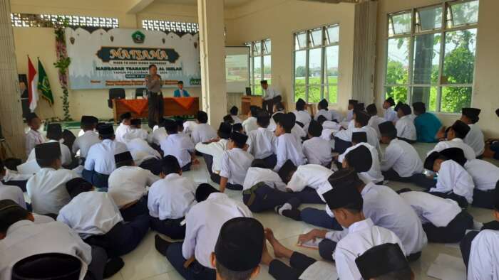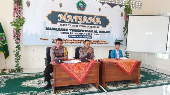 Satu diantaranya MTS Al-Islah Dlopo Desa Karangrejo Kecamatan Ngasem, lokasi yang digunakan Kanit Binmas Polsek Ngasem Aiptu Imam Solikin dan Aiptu Rafly Mahendra, S.H. memberikan pembekalan, Selasa, (11/7/2023).