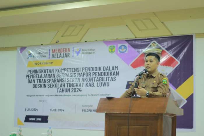 Palopo // faktaperistiwanews.co – Pemerintah Kabupaten Luwu melalui Dinas Pendidikan menggelar Workshop Peningkatan Kompetensi Pendidik dalam Pembelajaran Berbasis Raport Pendidikan dan Transparansi serta Akuntabilitas Boskin Sekolah Kabupaten Luwu Tahun 2024.