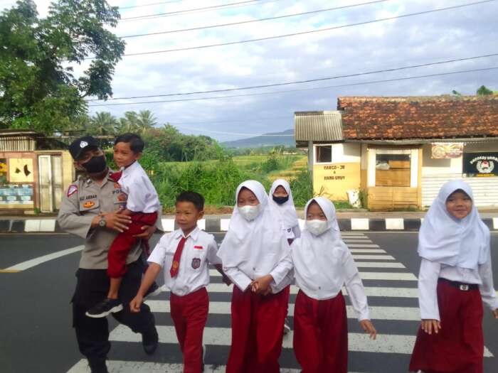 Guna Menjaga Keamanan Pengguna Jalur Simpang Tiga di wilayah hukum Polsek Cigugur. Babinkamtibmas Polsek Cigugur Polres Kuningan Polda Jabar Kolaborasi Bersama Rekan Atensi Pengaturan Lalu Lintas Serta Penyebrangan Guna Mewujudkan Manajemen Perubahan Menuju Zona Integritas WBBM.