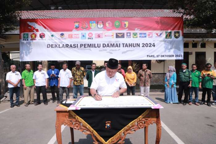 Dalam kegiatan tersebut dilanjutkan dengan pernyataan Deklarasi Damai bersama para perwakilan dari seluruh partai politik yang ada di Kabupaten Kediri.