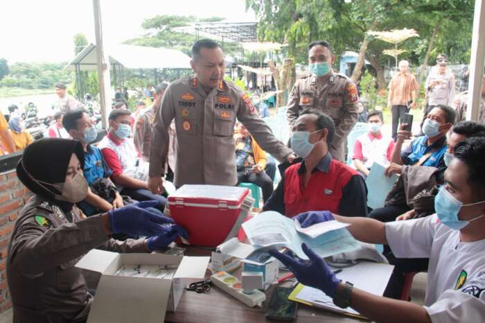 Sebelum pelaksanaan jumat curhat Polres Kediri kota juga menggelar Bhakti kesehatan gratis serta vaksinasi dosis 1,2 dan boster.