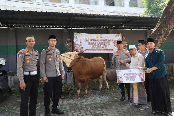 “Bantuan hewan kurban ini berupa satu ekor lembu dari Kapolda Jawa Timur dalam momentum Idul Adha 1446 H,” katanya.