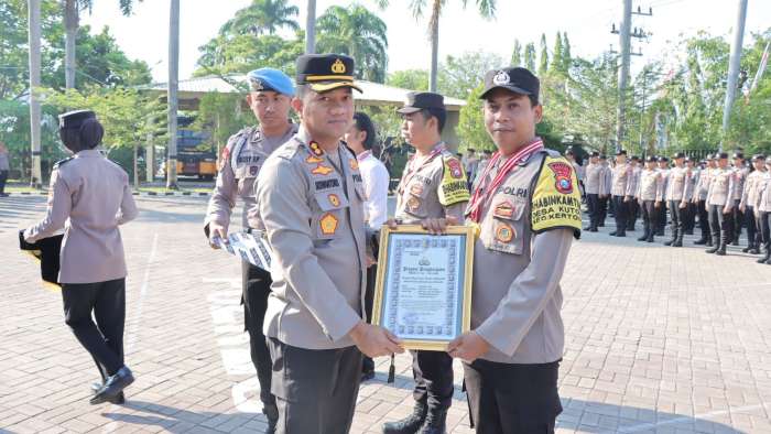 Piagam penghargaan tersebut diberikan secara seremonial dalam sebuah upacara yang dilangsungkan di halaman apel Polres Nganjuk dan diikuti oleh Pejabat utama (PJU), Kapolsek jajaran dan anggota Polres Nganjuk.