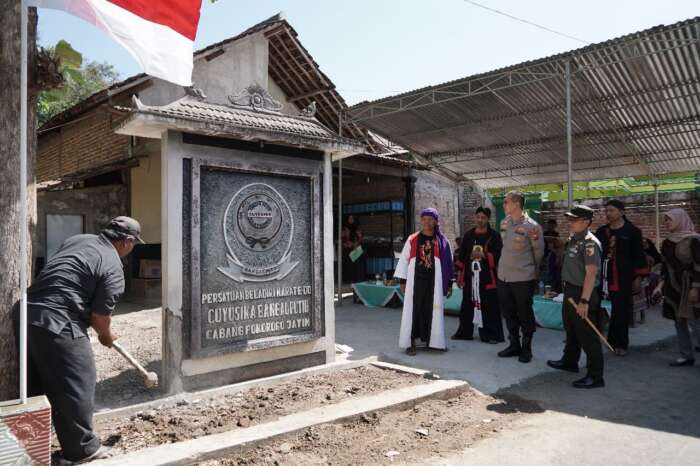 Pembongkaran oleh para anggota perguruan Cuyusika Bangau Putih juga disaksikan oleh Kapolres Ponorogo, AKBP Wimboko S.I.K dan Dandim 0802 Ponorogo Letkol Inf Hirta Juni Asdriansyah serta Forpimka Sukorejo, Rabu (9/8/2023).