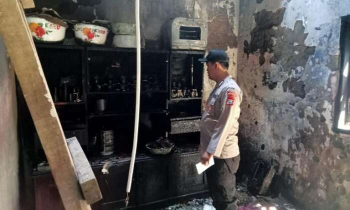 “Setelah di kamar kurang lebih dua puluh menit, korban kaget ketika ke luar kamar ada kobaran api di ruang tengah rumahnya, “ kata AKP Pudji Wahyono.