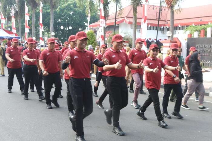 Dengan mengikuti lomba baris berbaris tingkat Dinas atau Instansi, yang digelar oleh Pemerintah Kota Blitar, Senin (7/8/2023).