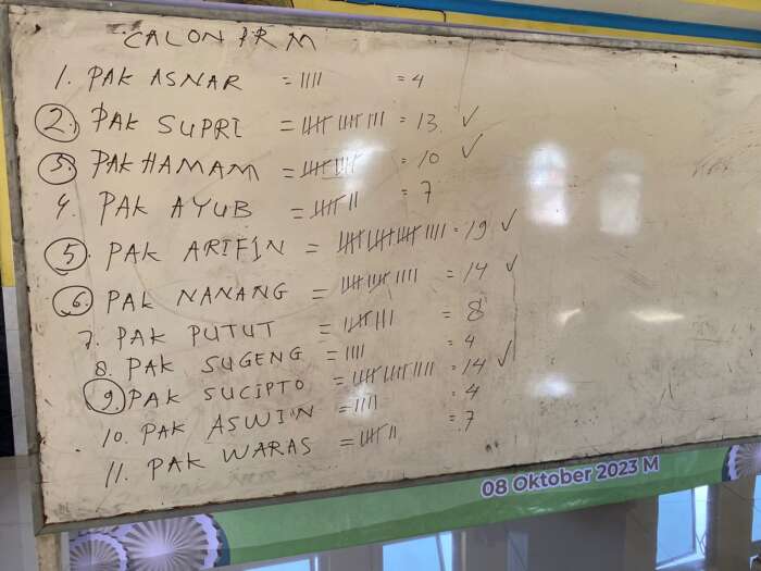 Pemungutan suara dilakukan dengan manual, menulis nama 5 orang untuk dipilih menjadi pimpinan di secarik kertas. Begitu pula penyampaian hasil pemungutan suara, dibacakan dan ditulis secara langsung di sebuah papan tulis di hadapan peserta.