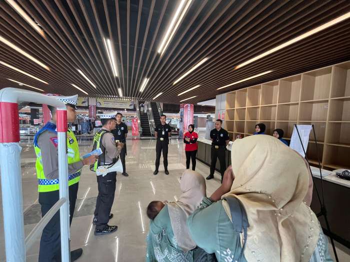 Kepada pengunjung di pusat perbelanjaan, petugas menghimbau agar menjadikan tertib berlalulintas sebagai budaya.