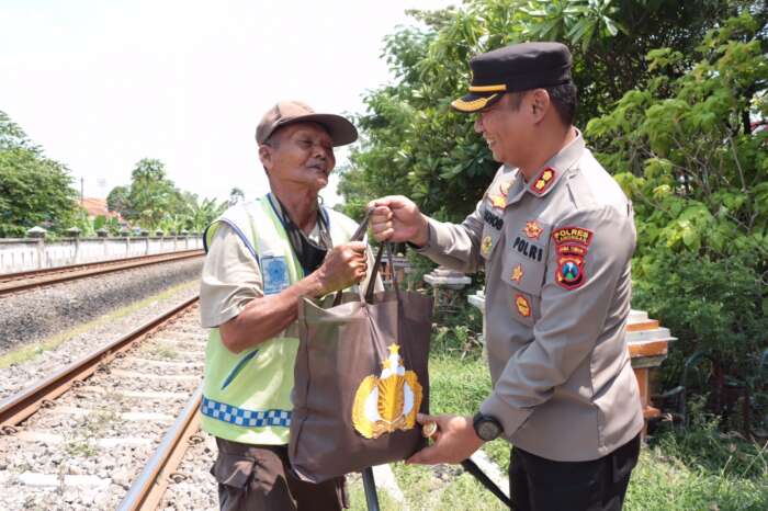 Selain memberikan paket sembako tersebut kepada petugas penjaga palang pintu rel kereta api, Kapolres Lamongan juga memberikan himbauan kepada para petugas agar lebih waspada dalam bertugas menjaga pintu rel kereta api.