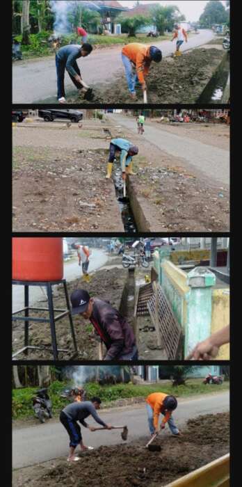 Gotong royong bersama dan membersihkan lingkungan seperti pembersihan rumput di sepanjang jalan poros di lingkungan Desa Remban dan juga grenase yang tersumbat.