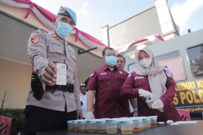 Kapolres Kediri Kota AKBP Teddy Chandra, S.I.K., M. Si. melalui Wakapolres Kompol Doddy Pratama, S.I.K. mengatakan hari ini sengaja melakukan tes urine mendadak kepada anggota Sat Reskrim dan Sat Resnarkoba Polresta Kediri Kota setelah pelaksanaan Apel pagi.
