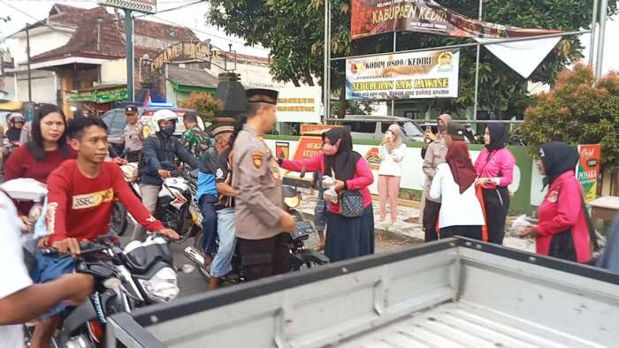 Kapolsek Kandangan Iptu Wahyu Hariadi S.H. mengatakan kegiatan berupa pembagian takjil untuk berbuka puasa bagi para pengguna jalan yang melintas di depan Kantor Kecamatan Kandangan, tepatnya di Jalan Malang.
