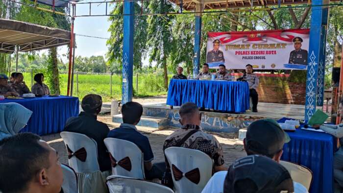 Dalam Jum’at kali ini dihadiri oleh Ketua DPRD Kab Kediri Dodi Purwanto, Waka Polres Kediri Kota Kompol Himawan Setiawan serta PJU Polres Kediri Kota serta warga masyarakat Kec Grogol.