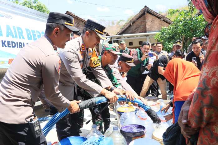 Kapolres Kediri Kota AKBP Bramastyo Priaji, S.H., S.I.K., M.Si. mengatakan, kegiatan ini merupakan upaya kita bersama untuk meringankan masyarakat yang kesulitan untuk mendapatkan air bersih di musim kemarau.