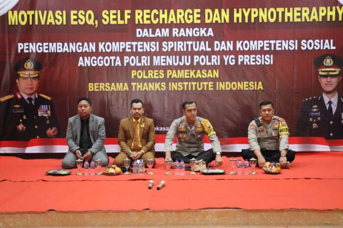 PAMEKASAN || faktaperistiwanews.co – Polres Pamekasan yang merupakan jajaran Polda Jatim bersama Thanks Institut Indonesia, menggelar Training Motivasi Emotional Spiritual Quotient (ESQ), Self Recharge dan Hypnotheraphy, pada Selasa (07/03/2023) pagi.