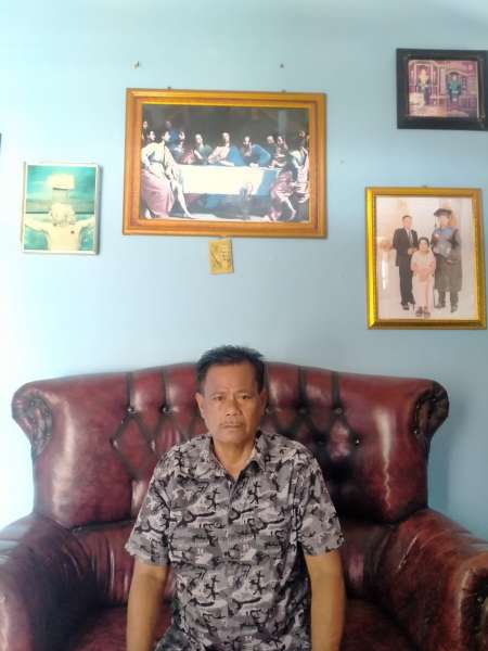 Kaur Pembangunan Desa Tumale Obeth Sumanggi saat meninjau lokasi bersama awak media Fp News. (Jaya)