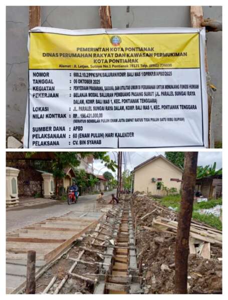 Proyek ini dilaksanakan oleh CV Bin Syahab sebagai kontraktor pelaksana dan berada di bawah pengelolaan Dinas Perumahan Rakyat dan Kawasan Permukiman (Disperkim) Kota Pontianak. Namun hingga berita ini diturunkan, petugas pengawas maupun konsultan lapangan jarang terlihat melakukan monitoring pekerjaan.