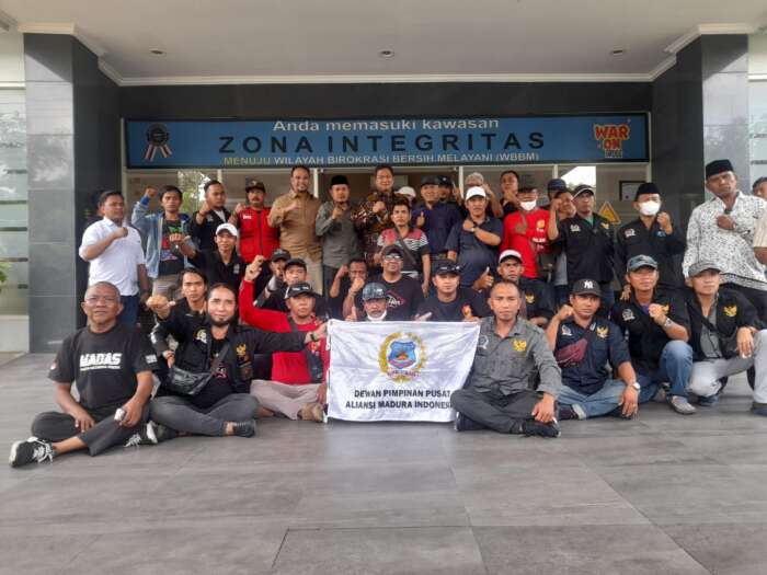 Surabaya || faktaperistiwanews.co – Usai menggelar aksi demonstrasi di Kantor Kementerian hukum dan HAM, Ormas Gabungan Madura yang terdiri dari AMI, Joyosemoyo, AKB Foundation, Jawara, Jatim One, Madas, Darderdor dan Sakera, kini menyerukan aksinya di kantor Badan Narkotika Nasional Provinsi Jawa Timur.