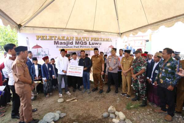 Belopa || faktaperistiwanews.co — Bupati Luwu, H. Patahudding, secara resmi meletakkan batu pertama sebagai tanda dimulainya pembangunan Masjid Ma’had Qori Sulawesi (MQS) Luwu, yang berlokasi di Perumahan Puri Permata Senga 2, Jalan Batu Murrung, Kelurahan Senga, Kecamatan Belopa, Selasa (21/10/2025).