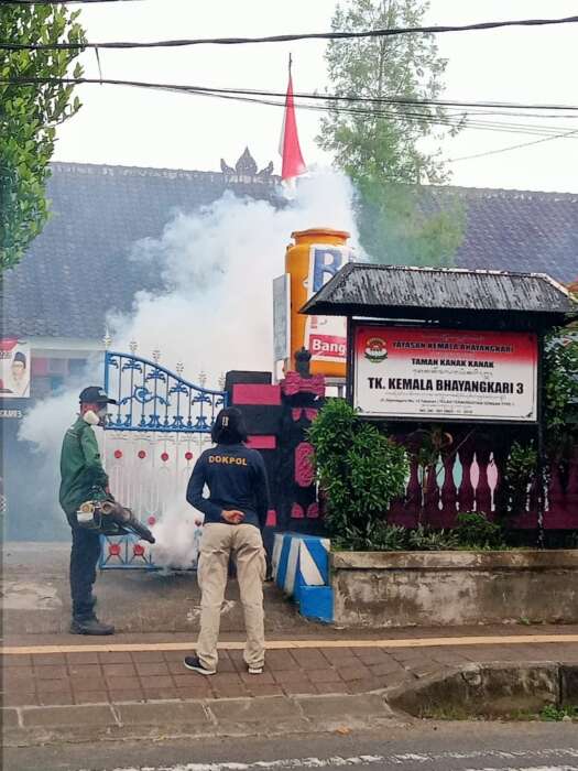 Tabanan || Faktaperistiwanews,co, – Untuk mencegah terjadinya penyebaran demam berdarah dengue (DBD) di lingkungan Mako Polres Tabanan, seksi kedokteran dan kesehatan (sidokkes) Polres Tabanan melakukan Fogging pada hari Minggu tanggal 21 Mei 2023 pukul 05.00 sampai dengan 07.00 wita. Penyemprotan dilaksanakan di beberapa berbagai titik yang dicurigai adanya sarang nyamuk di lingkungan Mapolres Tabanan, asrama dan lingkungan sekolah TK Kemala Bhayangkari Tabanan.